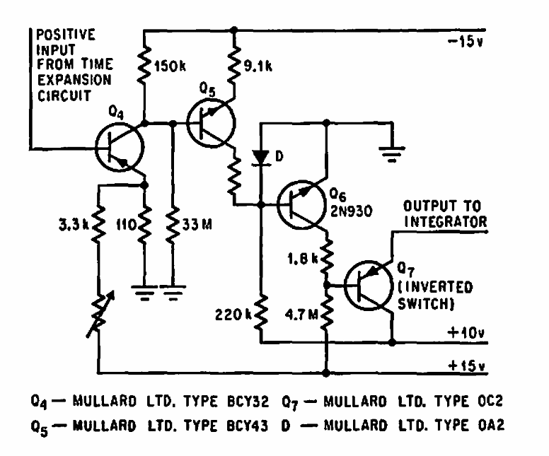 Found in an American publication in 1967, this circuit generates pulses for the triggering of a LASER of the time. The circuit receives a signal in the form of a ramp producing a rectangular signal.
