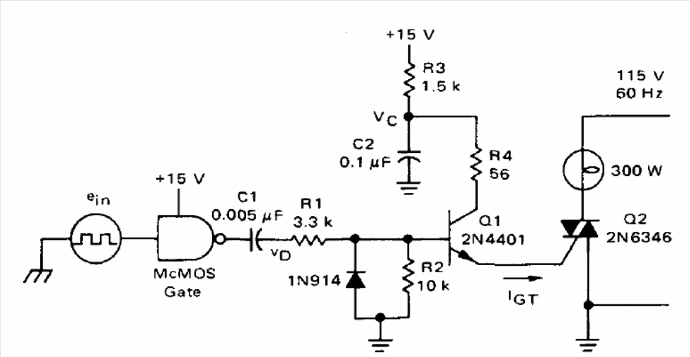This circuit is from an old American publication from 1975 but can be easily implemented with any triac. The transistor can be the BD135 and the diode 1N4148. The CMOS port can be a 4001 or 4011 connected as an inverter, that is, the two-unit inputs. The circuit is only for resistive loads.
