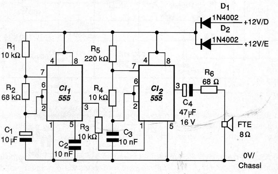 Older cars and some modern models do not have an audible direction indicator. This simple circuit can be adapted to the car, using components common in our market. The circuit is from 2002 documentation. The components can be changed to change the sound.