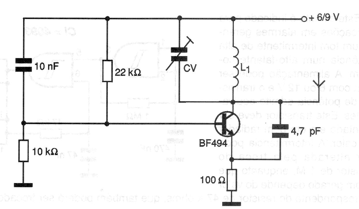 The coil of this analog composite video signal transmitter is formed by 6 or 7 splashes of 26 or 28 wire in the form of 1 cm without core. The video signal is applied to the transistor emitter via a 100 nF capacitor.