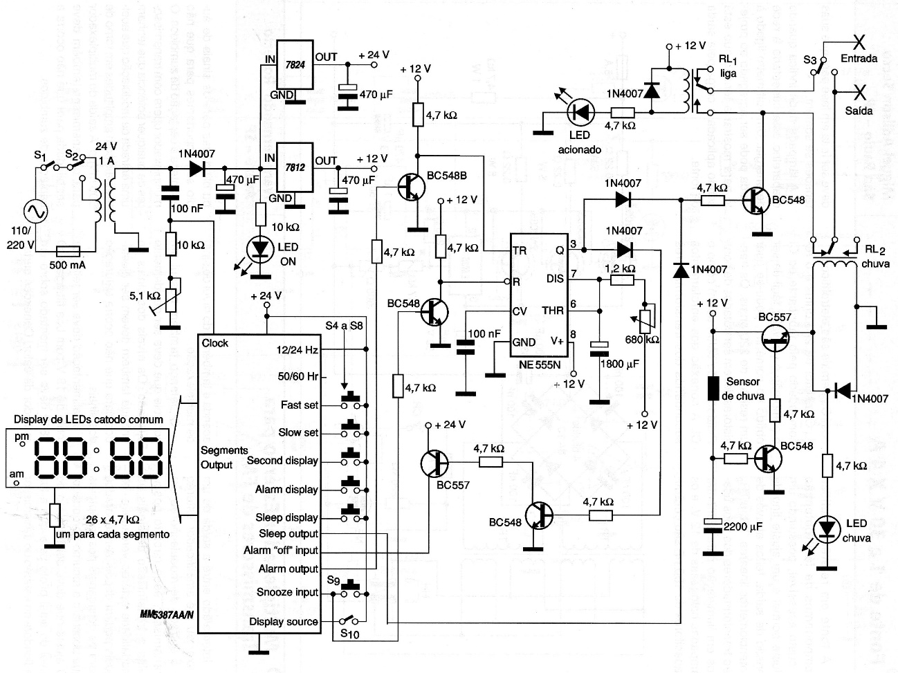 This project uses an unusual integrated circuit that consists of a programmed timer. The circuit was obtained in a 2008 documentation and uses an LED display to indicate the programmed and elapsed times.