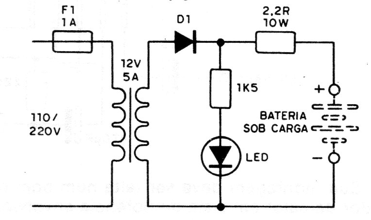 This simple charger has no charge indication or other features of a more sophisticated design. It only applies a charging voltage to the battery and the user must control the charging time and verify that it is charged.