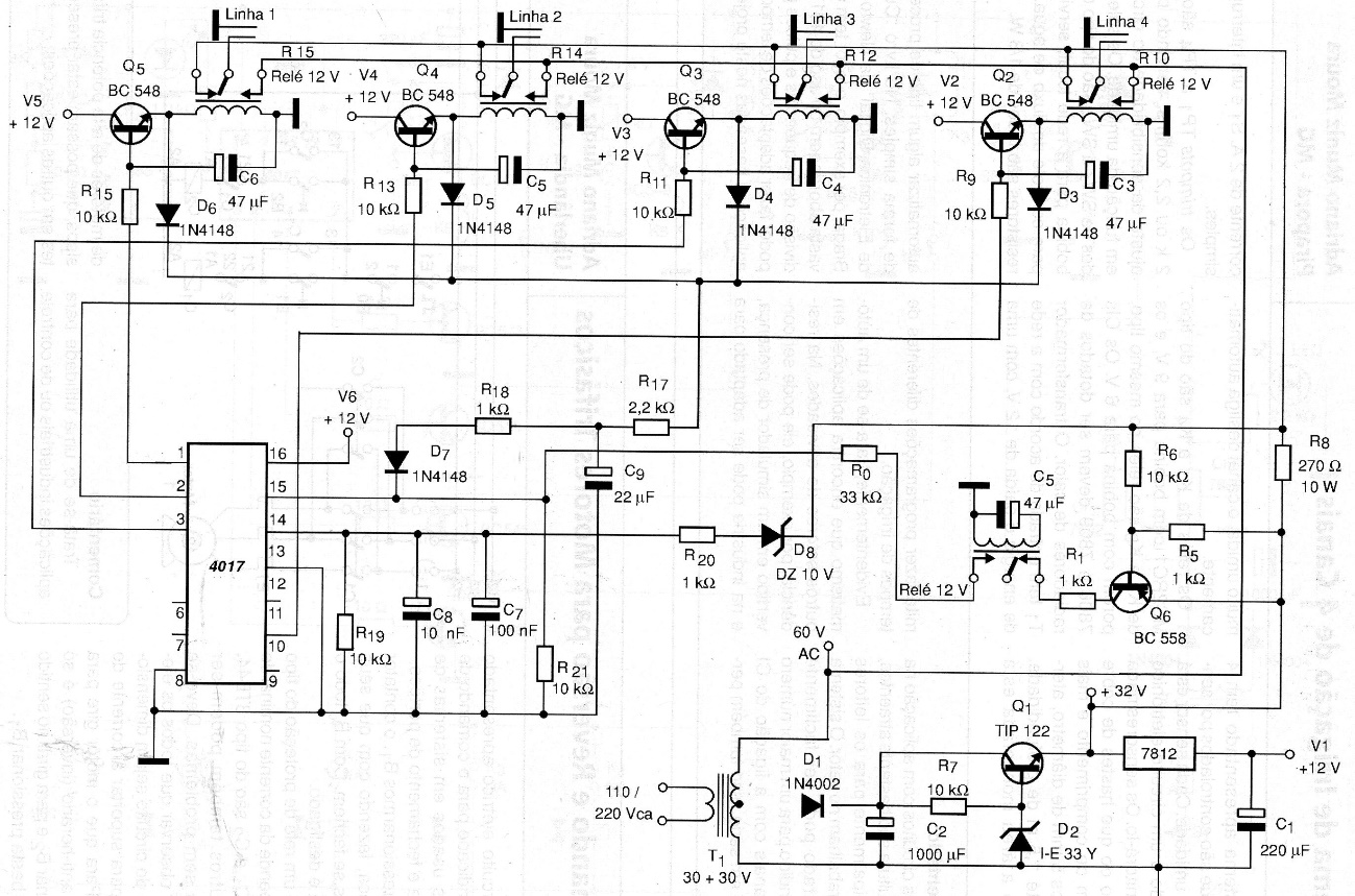 Here is a very useful circuit that can be expanded, including the use of more integrated circuits 4017. The circuit also serves as a reference for projects that make use of the 4017 in control.