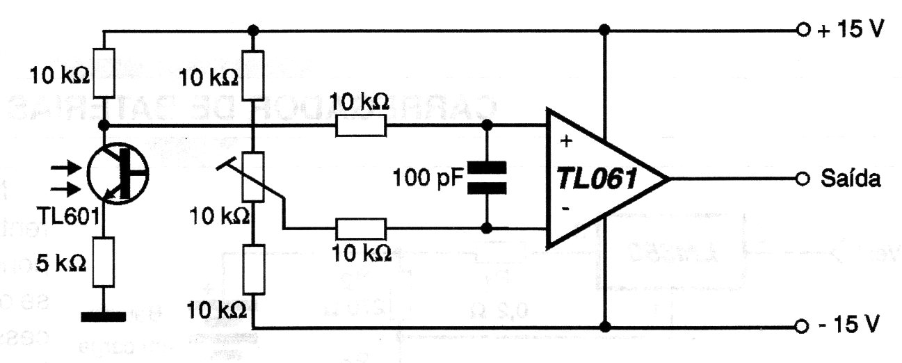 This circuit, from 2001 documentation, uses a phototransistor as a sensor and an operational amplifier with FET. The circuit is adjusted in a trimpot and the power supply must be symmetrical.