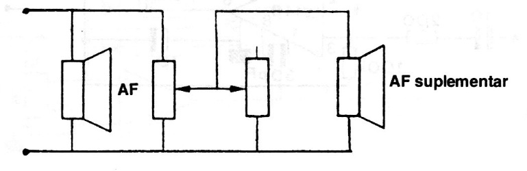 This circuit controls the passage of the signal from one speaker to another. The potentiometers must be of wire 50 to 100 ohms with dissipation according to the power of the sound system.