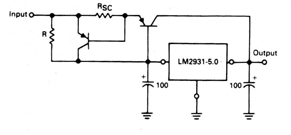 This regulator with current boost and short circuit protection was found in the LM2931 manual that is used in this case. The integrated circuit is not very common today.