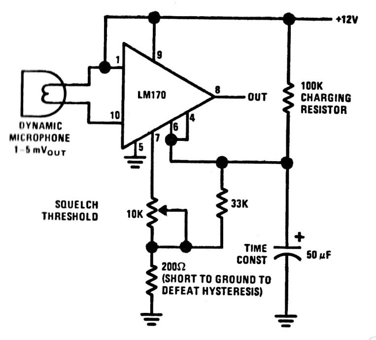 This silencer or squelch preamp circuit was found in a documentation for radio amateurs. It completely mutes the circuit when there is no sound picked up by the microphone.