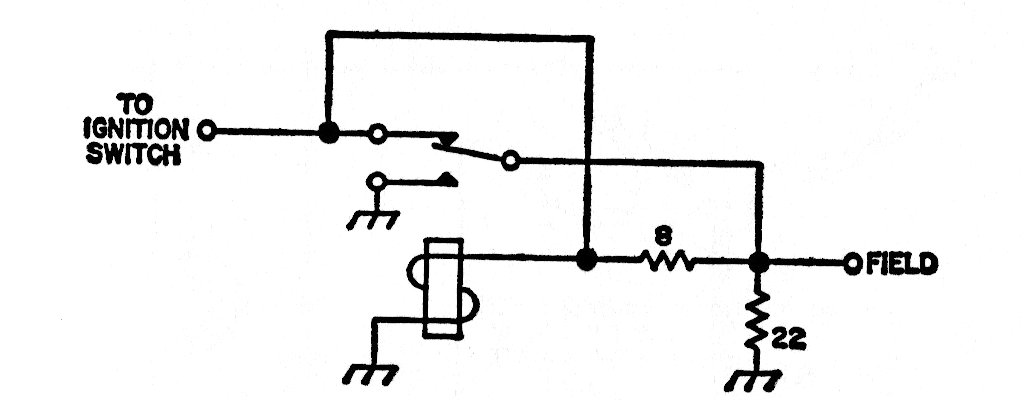 This is the circuit of an automotive voltage regulator from the 1970s. The circuit is entirely electromechanical based on the closing of a relay contacts according to the voltage.