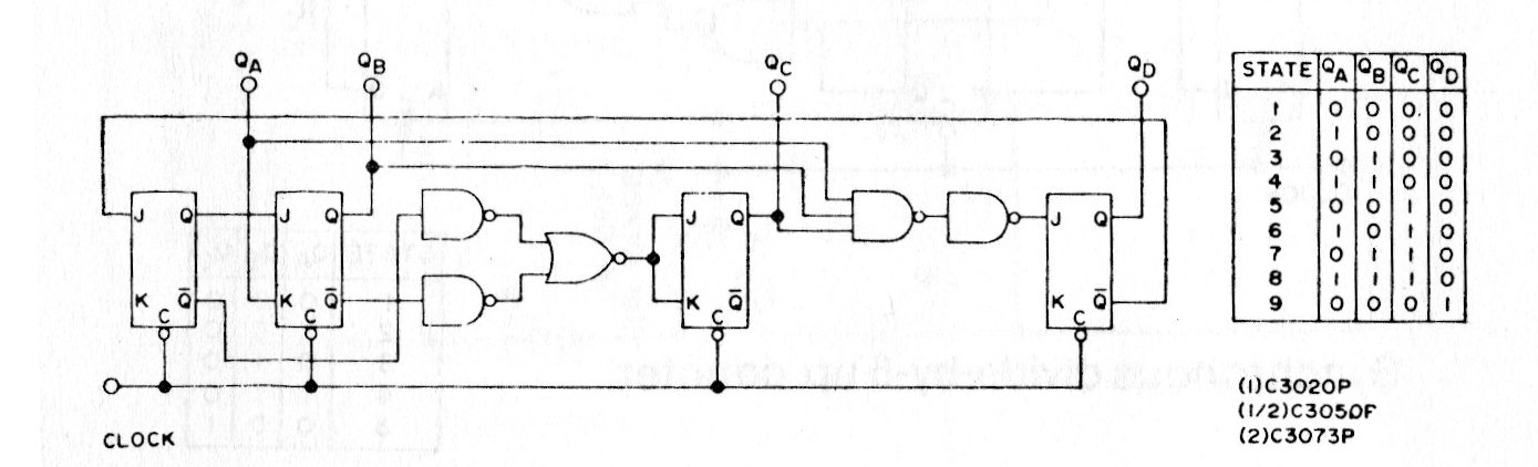This divider by 9 is synchronized because it is implemented based on TTL or CMOS logic according to the desired application. The circuit is from American documentation and the maximum speed depends only on the logic used.