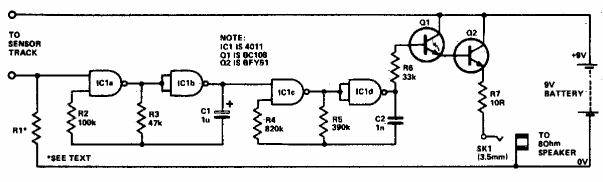 This simple rain, leak or moisture detector circuit appears in other places on this site with slight variations. This was obtained in an English documentation from the 70s.