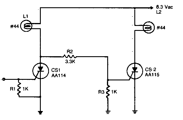 With this circuit it is possible to simultaneously control two low voltage incandescent lamps. SCRs are from the 70s, admitting modern equivalents.