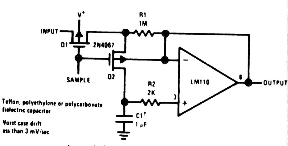 This is another sampling and holding circuit found in a factory manual from the 1980s. The circuit can be implemented with more modern components. The FET is not a common component today.
