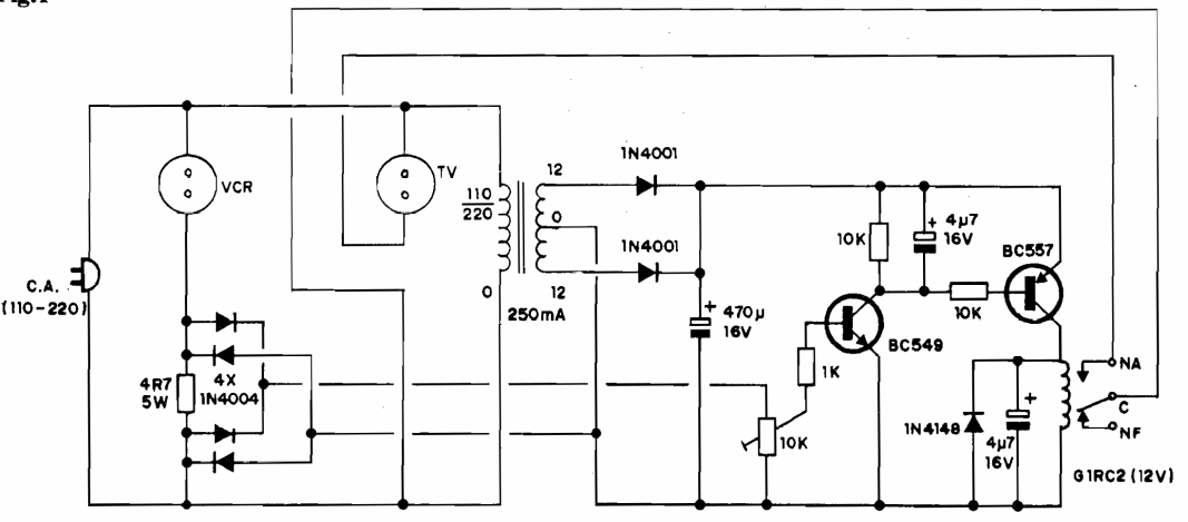 When the VCR is turned on, the TV is automatically activated. This circuit of an old project publication can be adapted for other purposes in which the activation of one circuit causes the connection of another.