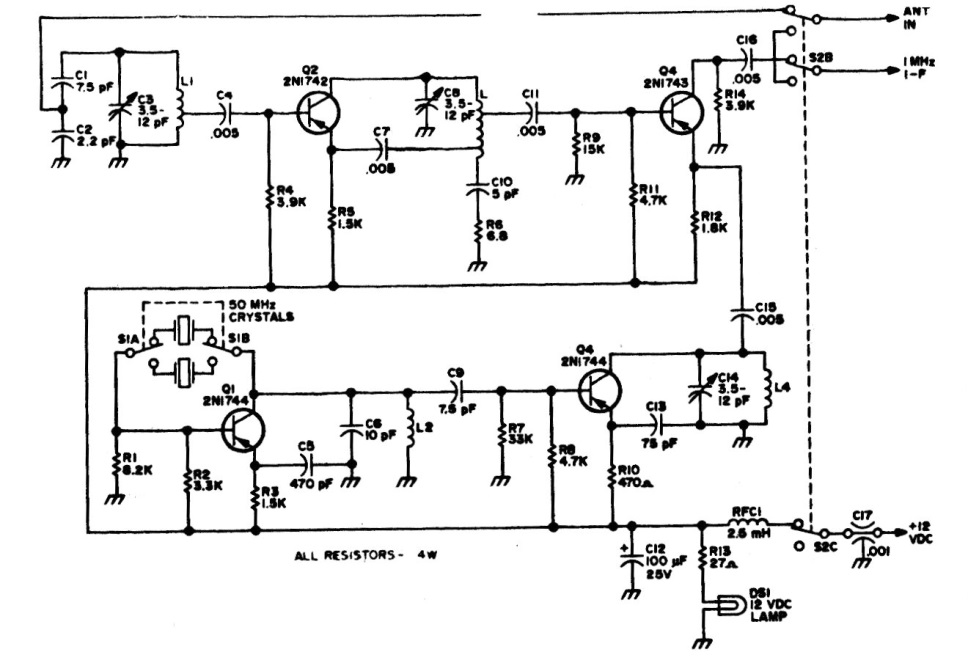 This circuit was found in an American documentation. Its purpose is to modify the tuning range of a car receiver according to the crystals used. A local oscillator makes the beat between the captured signal and the generated signal to obtain reception in a lower frequency range.