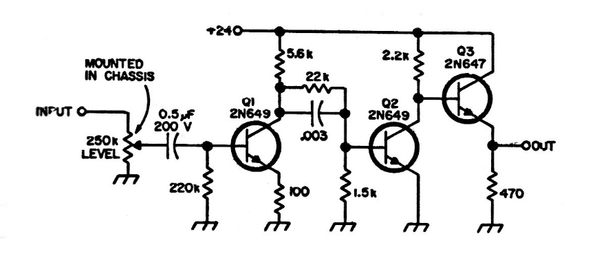 This circuit improves the shape of an input pulse by smoothing it out to make it more appropriate for the excitation of a digital circuit. Modern switching transistors such as 2N2222 can be used. The circuit is from old documentation.