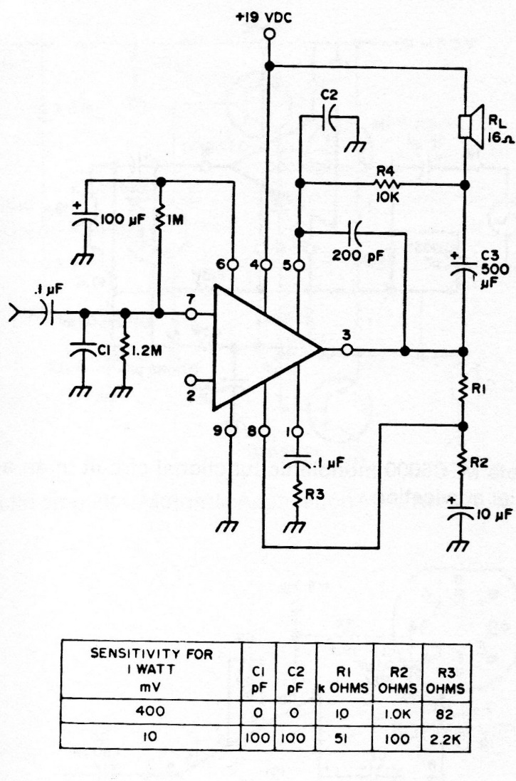 This amplifier uses an integrated circuit from the 70s, which is no longer common on the market. The circuit was used at the time as a sound output stage for televisions.