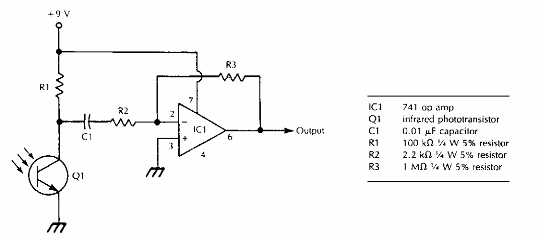 Found in American documentation from the 1990s, this circuit receives modulated infrared signals. The baud rate depends on the operative used. The main application is like audio link.