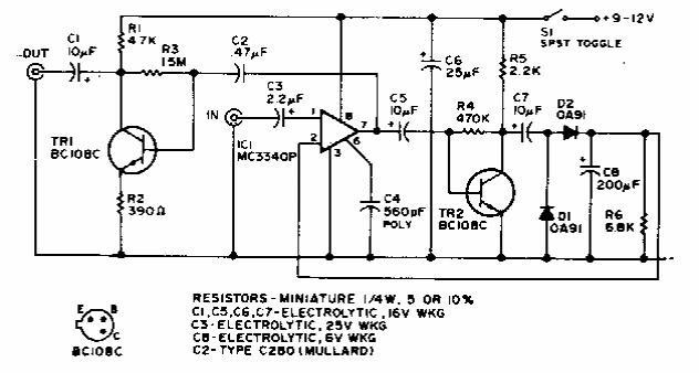 This circuit is from the magazine 73, for radio amateurs, from the 80s. The circuit uses common components at the time. The power supply is a simple 12 V.