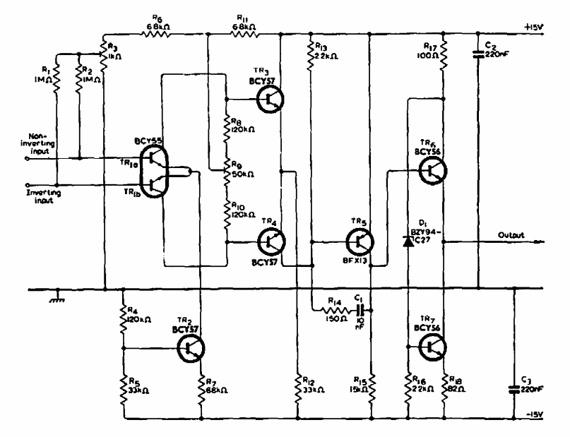 Suggested by Philips documentation from 1968, this circuit uses components from the era that can be replaced by modern equivalent types. The double transistor can be replaced by a matched pair.