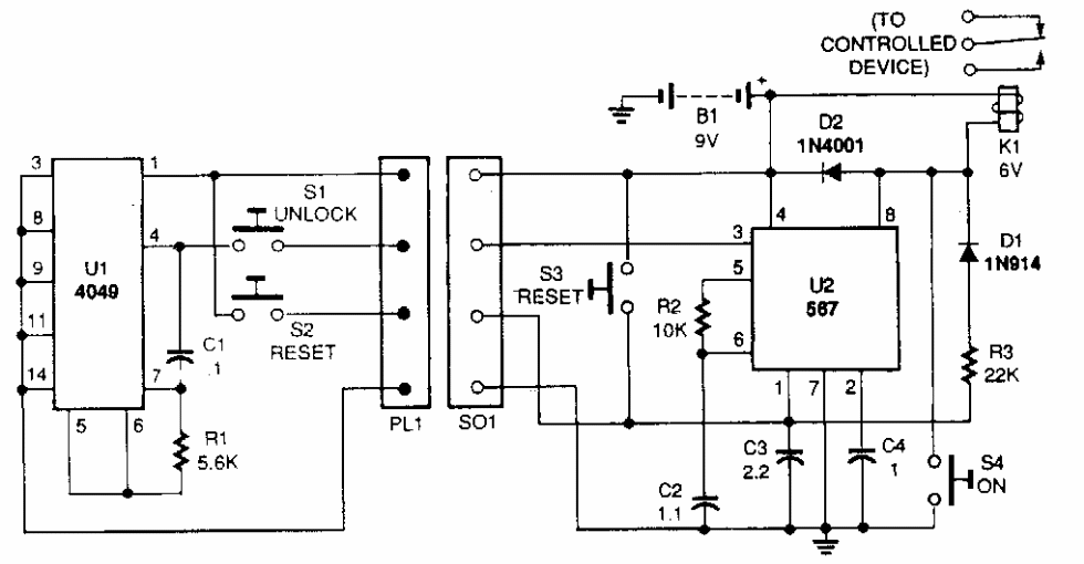 This code key uses a PLL and an oscillator that generates two frequencies that must be recognized for the relay to be activated. The circuit is from an 80's Popular Electronics.