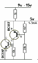 In the absence of a 5 V zener diode, we can create an equivalent configuration with two transistors, as shown in the figure. The circuit at a maximum current of the order of 1.3 mA and the input can be between 9 and 15 V.