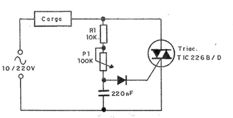 The circuit that we will see below uses an element of the semiconductor family that is not yet known to readers who are reading this book in sequence. This is Diac, which will be covered in detail in the next item. We can say that the diac improves the triac's tripping characteristics, producing the high current pulses it needs for a tripping with a voltage higher than the normal 2 V. The component formed by a diac and triac in the same casing receives the suggestive name of "quadrac". The circuit of our power control that can adjust the brightness of lamps up to 500 watts and the speed of motors up to 1/2 HP is shown in the figure.