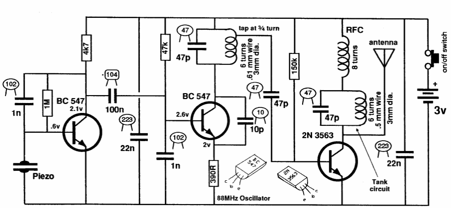 L1 is formed by 80 turns of wire 28 in a ferrite rod to tune medium waves range. The circuit can...