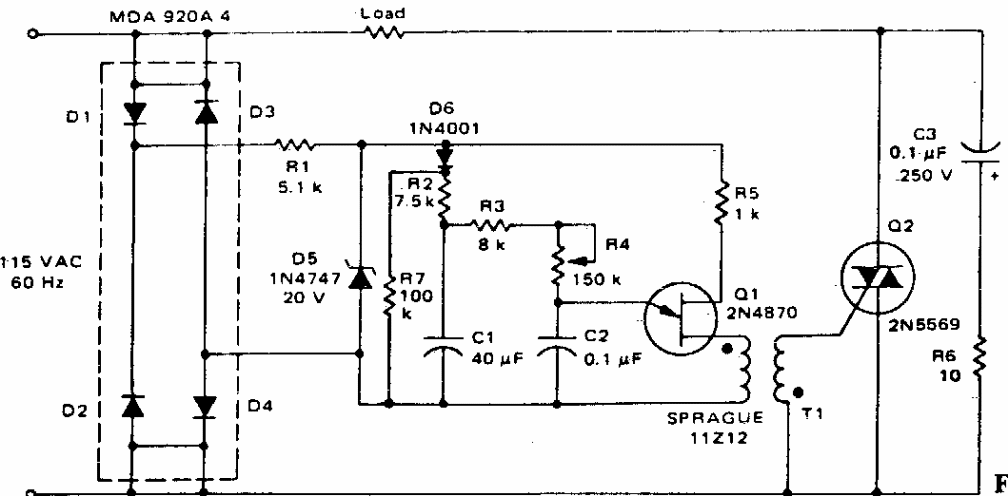This circuit was obtained in documentation from the 1980s. The triac and the unijunction support modern equivalents. The trigger transformer is 1: 1 turn ratio.