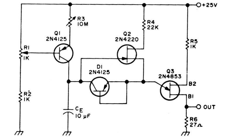 Timings of up to 10 hours, depending on the capacitor used, can be obtained with this circuit that we find in an American technical documentation from the 70s. Transistors admit equivalents. Circuits like this appear in this section but from other sources.