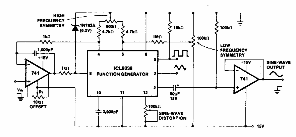 This circuit was obtained in an old documentation. The 8038 integrated circuit is not a common component today.