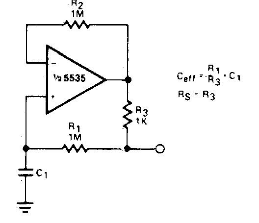 Modern operations can be used in this circuit that multiplies a capacitance of 10,000 uF for a capacitor of 10 uF. The circuit requires symmetric power supply.