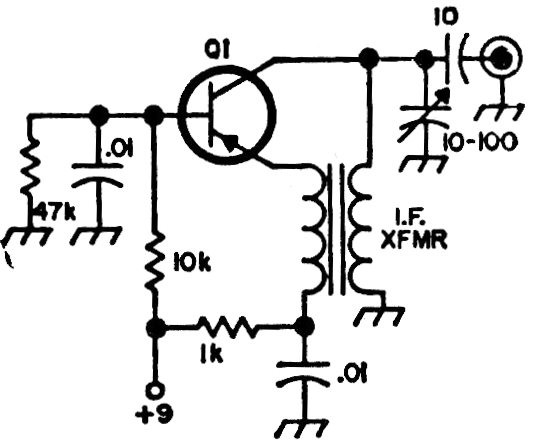 This circuit can be used to listen for SSB signals on receivers that do not have the built-in feature. The coil must be an IF of the frequency of the receiving device. The transistor can be any common type of low power RF.