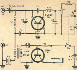 This transistorized receiver was found in Popular Electronics from February 1968. Transistors are from the period. Listening is through headphones and the tuned range depends on the L1 coil.