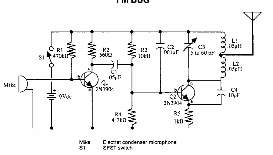 Found in documentation from the 1990s, this circuit supports equivalent transistors. The range is on the order of a few tens of meters.