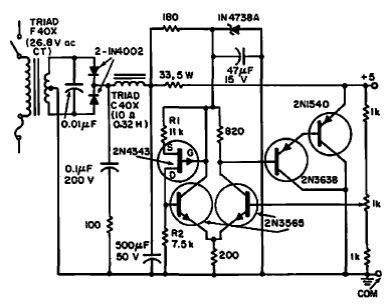 We found this circuit in a 1967 Electronic Design. The circuit uses contemporary transistors that can be replaced with modern equivalents. The output voltage is 5V.