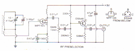 This circuit increases the signal strength in the range of 100 kHz to 10 MHz depending on the input coil. Transistors admit equivalents.