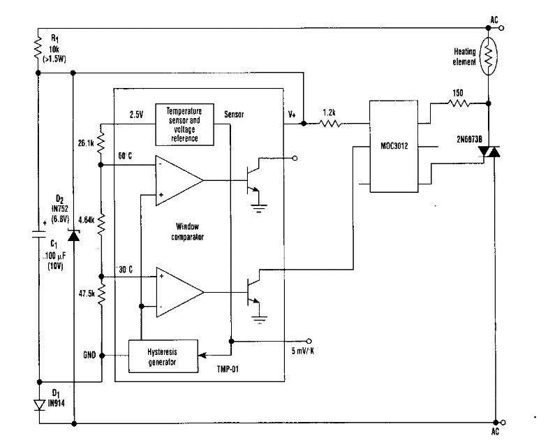 This circuit was found in an Electronic Design from the 90's. It makes use of components from the time. Triac is according to the controlled load.