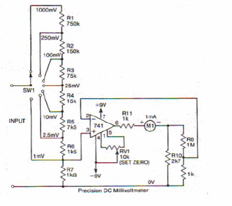 Several circuits similar to this one can be found on our website. This is from an internet documentation. The instrument has 1 mA full scale, and the power supply is symmetrical.