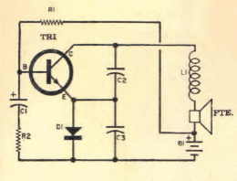 The purpose of this circuit is to imitate the dripping of a faucet. The circuit was found in a Popular Electronics from March/April 1969. The transistor admits an equivalent.