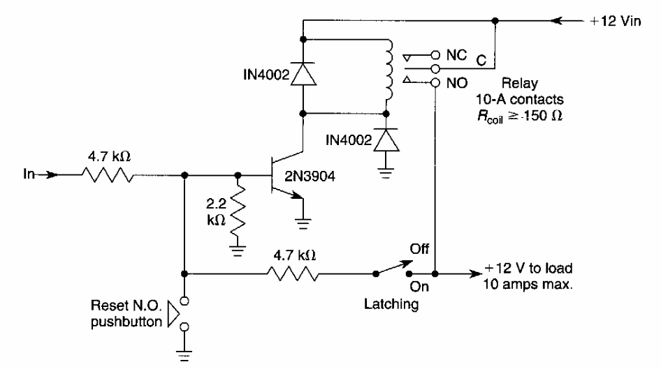This circuit can be used as a lockable shield. A pulse activates the relay that remains on even after the pulse disappears. The transistor is general purpose.