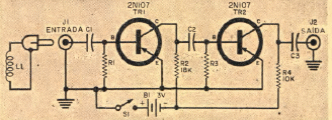 This amplifier circuit applies its signal to an ordinary audio amplifier to pick up signals from a telephone through a coil. Transistors are general purpose. The circuit is from an October 1968 Popular Electronics.