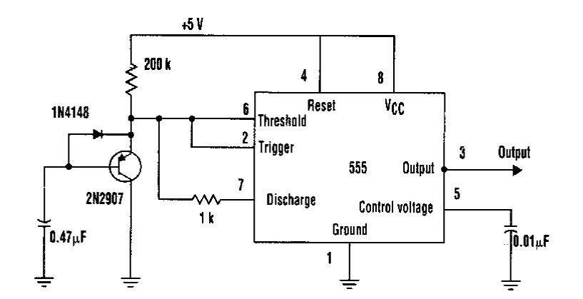 Found in Electronic Design, this circuit with the 555 has the extended times by using the transistor in the timing network.