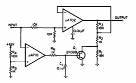 This circuit was found in a 1966 EEE. It is intended for automatic switching of the measurement range of a multimeter. Operational amplifiers are from the period.