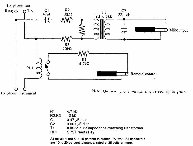 Found in an American documentation, this circuit shows how an interface should be made for recording telephone conversations with quality and safety.