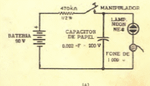 This circuit uses battery power, but it can be powered by an 80 to 200 V power supply, with no changes. The circuit generates a signal with a frequency determined by the resistor and capacitor.