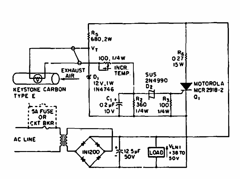 This circuit was found in old documentation. The SCR can be any of the 106 family. Note the sensor...