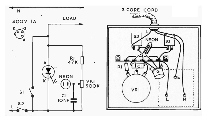 This very detailed Dimmer was found in an English documentation from the 90's. The SCR could be a modern equivalent like the TIC106. The circuit is only suitable for incandescent lamps.