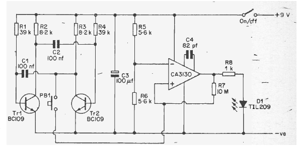 Found in an English publication from 1977, this circuit uses only 1 LED. Unlit means heads and lit tails. The transistors can be the BC548.