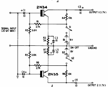 This circuit was found in an American publication from the 50's. The transistors are made of germanium and the power supply is dual.