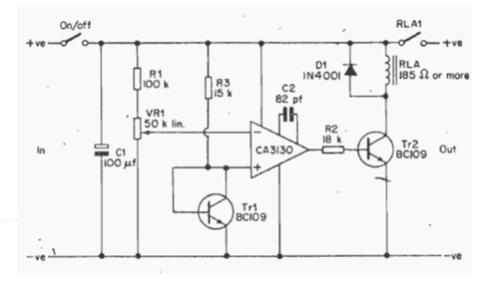 Using a CA3130, we found this circuit in an English publication from 1977. The circuit must use a relay that trips when the desired minimum voltage, set at VR1, is reached.